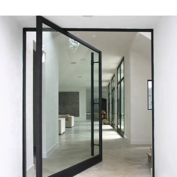 현대 빌라 집 입구를위한 맞춤형 피벗 알루미늄 프레임 더블 스윙 유리 문 에너지 절약 강화 유리